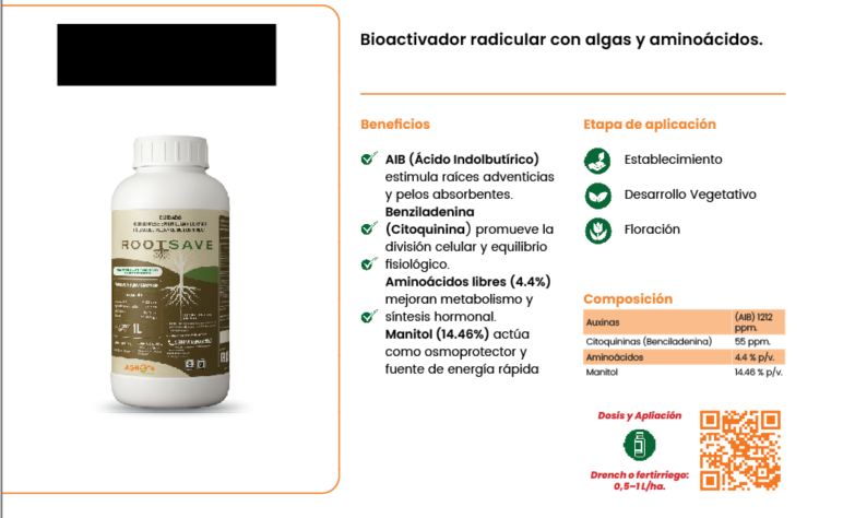 Bioactivador radicular con algas y aminoácidos.